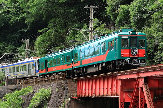 大きな窓配置が特徴で、渓谷や山林などの景色を存分に楽しめる車両。
